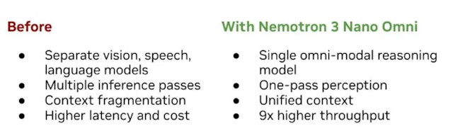 英伟达表示,新模型将多种功能整合于一个系统之中,使智能体能够利用视频、音频、图像和文本的高级推理能力,提供更快、更智能的响应。